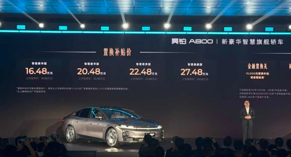 老铁们,中大型豪华轿车市场又杀进来一匹狠马!昊铂A800正式上市,官方指导价18.98-29.98万,现在限时置换补贴后只要16.48万起,还送5大订车权益,搭载华为最新896线激光雷达和乾崑智驾ADS V4.1,直接剑指比亚迪汉L,就连同样有华为助力的岚图追光L,也被它逼到了墙角。今天老王就跟大伙儿唠唠这台昊铂新旗舰,看看它凭啥16万多就能硬刚同级大佬,能不能在卷王扎堆的中大型轿车市场站稳脚跟。