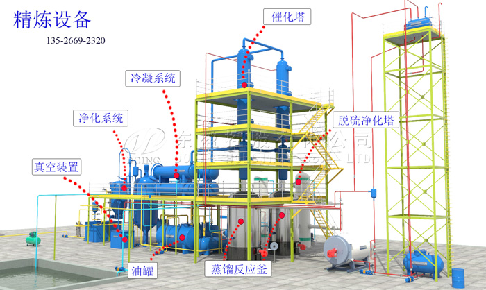 轮胎油精炼成非标柴油的过程有六个核心步骤。首先要经过预热处理,随后进行蒸馏、冷凝和分馏步骤,之后通过特定方式完成提纯,最后进行脱色处理。经过这些环节的处理,原本的棕黑色轮胎油会变成颜色清澈、无明显异味的非标柴油。目前主流的精炼工艺主要有固体催化剂工艺和酸碱洗工艺两种。