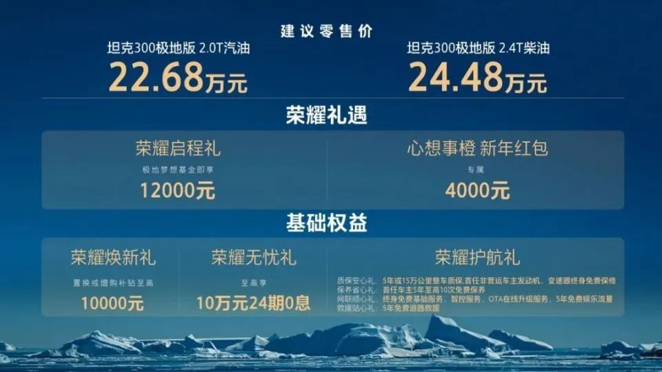 这就是刚刚登场、全球限量300台的坦克300极地版。22.68万起的价钱,它喊出的口号是让某些动辄大几十万的“老牌硬汉”(比如普拉多)直接尴尬。这车到底是样子货,还是真能去南极的硬核装备?咱来盘一盘。