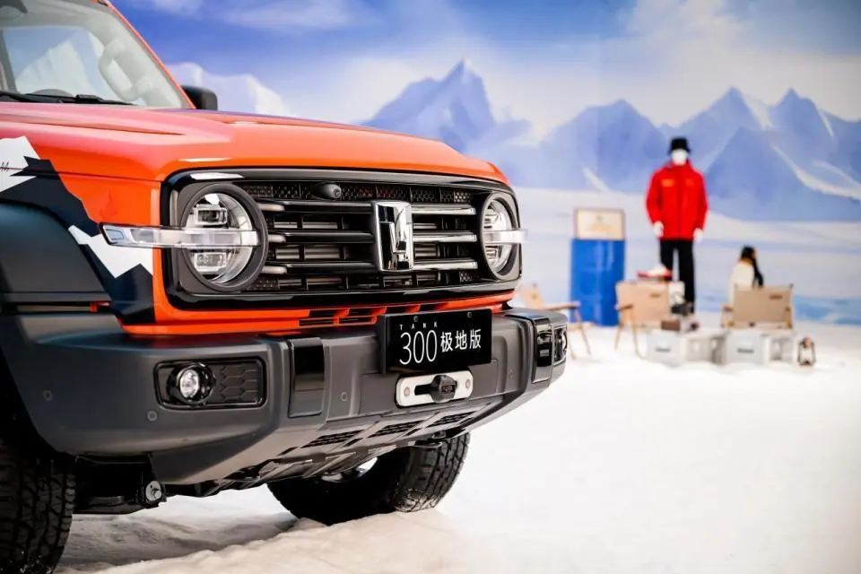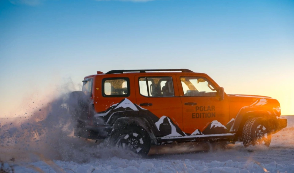 一眼看去,它还是我们熟悉的那个方盒子硬汉造型,但专属的极地拉花就像给这硬汉纹上了荣耀的勋章,宣告着它的特殊使命。这身行头,不是为了在市中心咖啡馆门口摆拍,而是为了在苍茫的白色世界中拥有极高的辨识度。对比普拉多那种略显保守的经典造型,坦克300极地版更显年轻和张扬,它用设计语言明确告诉观众:我生来就是为了挑战极限的,而不仅仅是在烂路上显得可靠。
