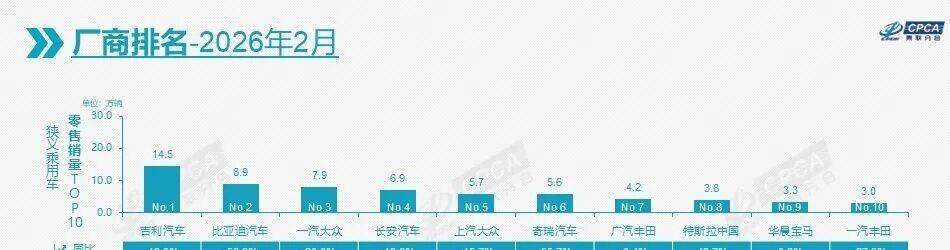 中汽协的数据一出来,不少人倒吸一口凉气。2月份乘用车国内零售销量95万辆,同比掉了34.2% 。补贴退坡叠加春节假期,这波“倒春寒”来得有点猛。最扎眼的当属比亚迪,2月国内销量直接掉到了8.96万辆,要知道去年同期可不是这个数,用“腰斩”来形容一点不过分 。