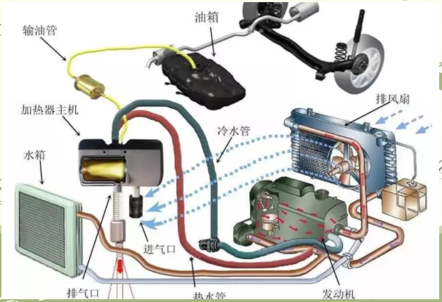驻车加热器,通常分为水暖加热系统和空气加热系统两大类。根据所使用的燃油类型,这些系统又可进一步细分为汽油加热系统和柴油加热系统。在大型货车、工程机械等领域,柴油气暖式加热系统较为常见,而家庭用小轿车则多采用汽油水暖式加热系统。由于我们专注于专用车领域,这里所探讨的驻车加热器工作原理主要针对柴油加热系统,因此也常被简称为柴暖。