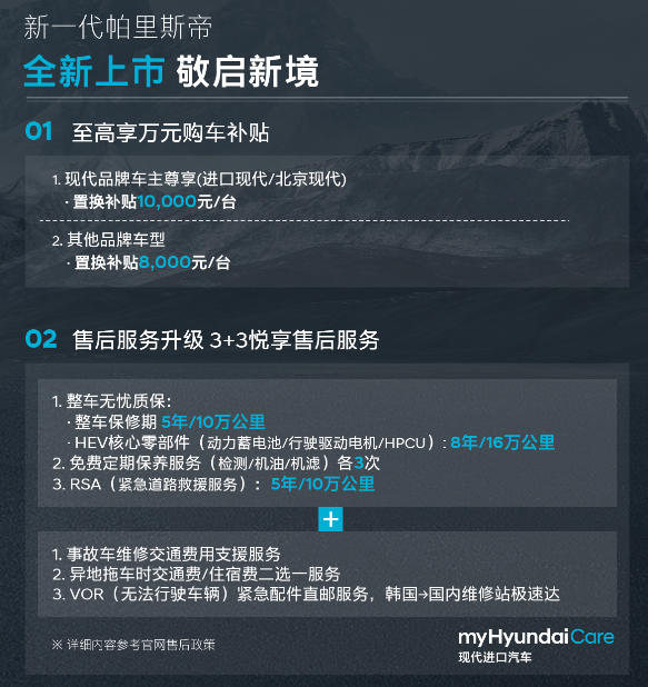 新一代帕里斯帝的官方指导售价在28.88-36.18万元,跟汉兰达是有一部分重合的,不过就动力和内饰的品质等部分来看,帕里斯帝要表现的更好,另外为降低用户购车与用车门槛,新一代帕里斯帝还推出“3+3悦享售后服务”政策,包括5年/10万公里整车质保、HEV核心零部件8年/16万公里质保、3次免费定期保养、5年/10万公里道路救援等基础保障,并升级提供事故车维修交通费、异地拖车交通费/住宿费报销、紧急配件直邮等服务。