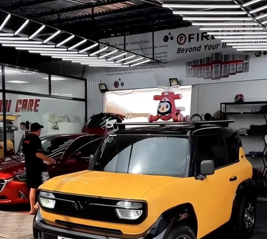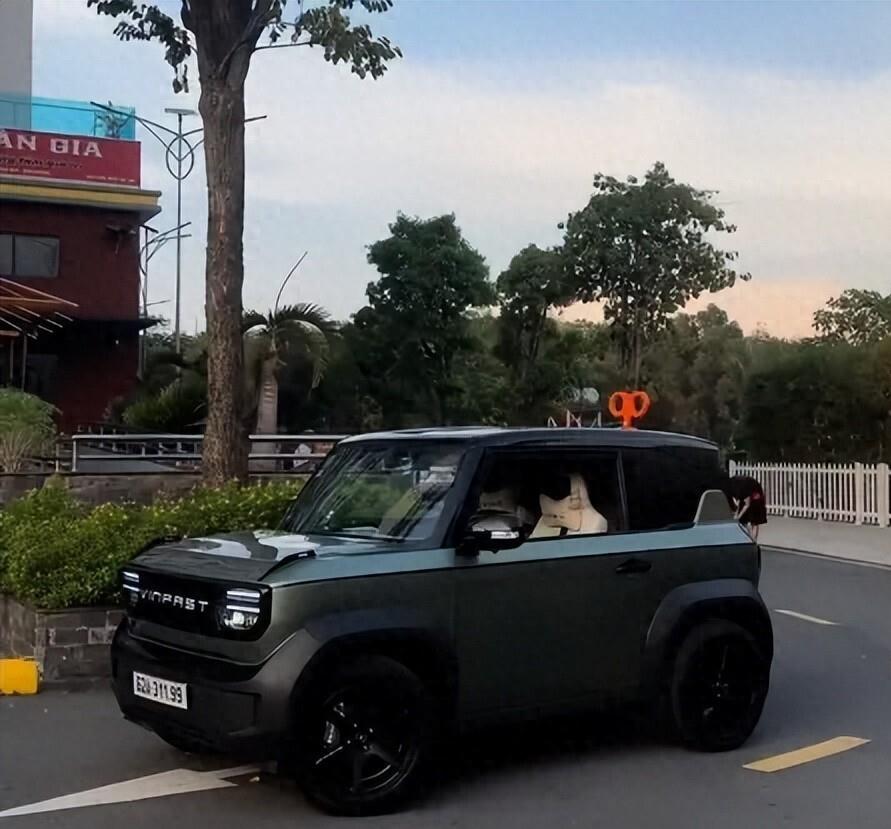 长得跟五菱宏光MINI EV几乎是一个模子刻出来的。不对,准确地说,它长得更像宝骏悦也。车身长度只有3114mm,双门设计,方方正正的造型,配上各种鲜艳的车漆颜色——蓝、白、红、灰、黄、绿、粉、浅蓝,走在路上特别扎眼。越南老百姓给它起了个外号,叫“越南版宝骏悦也”。