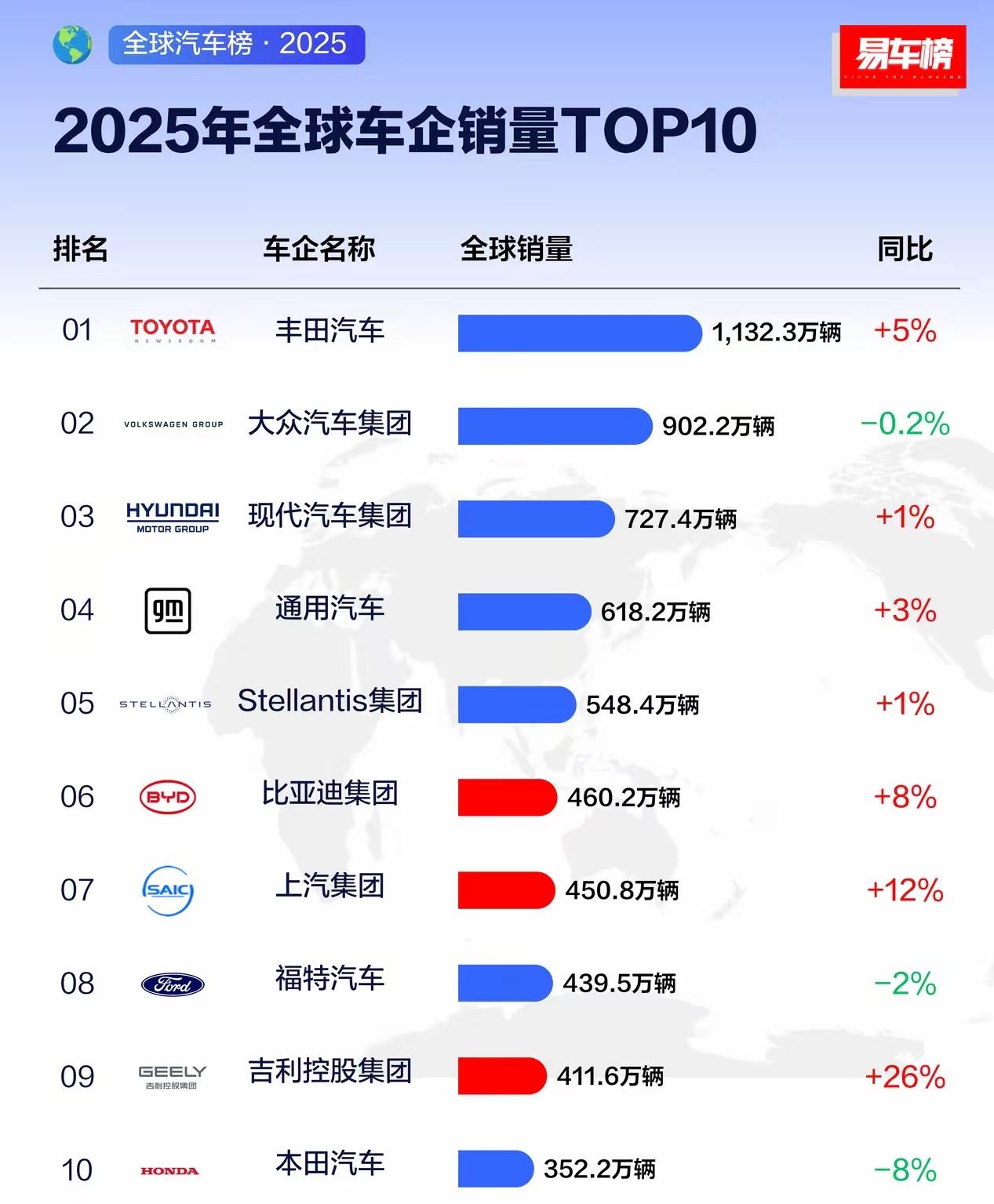2025年全球车企销量榜出炉:中国三家上榜,比亚迪纯电干掉特斯拉排第六,老外这回真坐不住了!