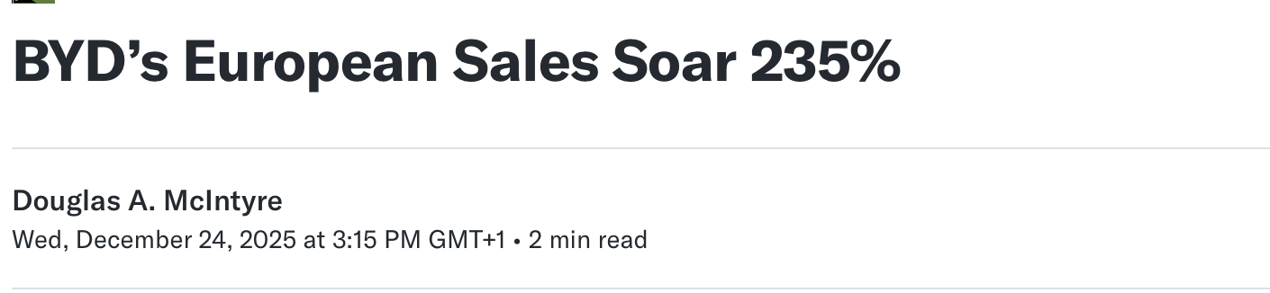 总体的来说,2025年是比亚迪在欧洲及全球市场成功的起点,2026年有望更上一层楼!