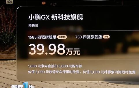 预售价格来了,39.98万元,有点儿意思哈。这个价格不属于那种一出来就让人“哇哦”的价格,甚至有人觉得小鹏是不是有点飘了?但别急,咱们得把话说清楚——不管是那个综合续航1585km的超级增程版,还是纯电续航750km的纯电版,这39.98万对应的都是各自的顶配。顶配定在40万以内,这事儿就有意思了。