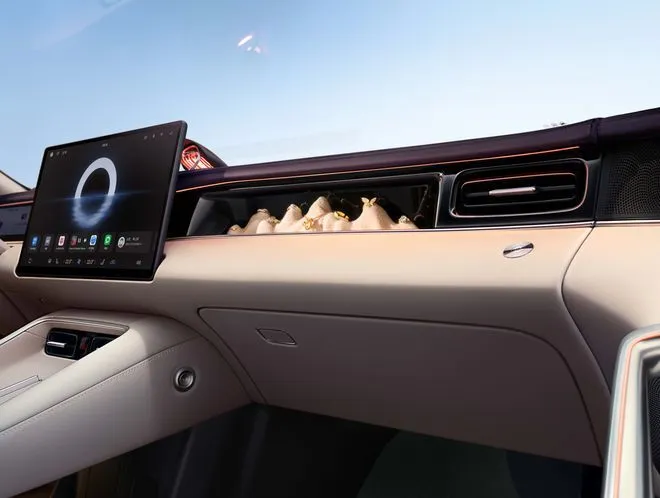 外观上,它把轿跑的颜值和运动感拉满,宽体低趴的姿态自带气场。低风阻流线设计搭配转角式跑车大灯,408个镭射发光点打造出璀璨星河灯效,辨识度直接拉满。前包围两侧导流槽+主动式进气格栅,好看又实用,车顶激光雷达毫不突兀,兼顾科技感与实用性。
