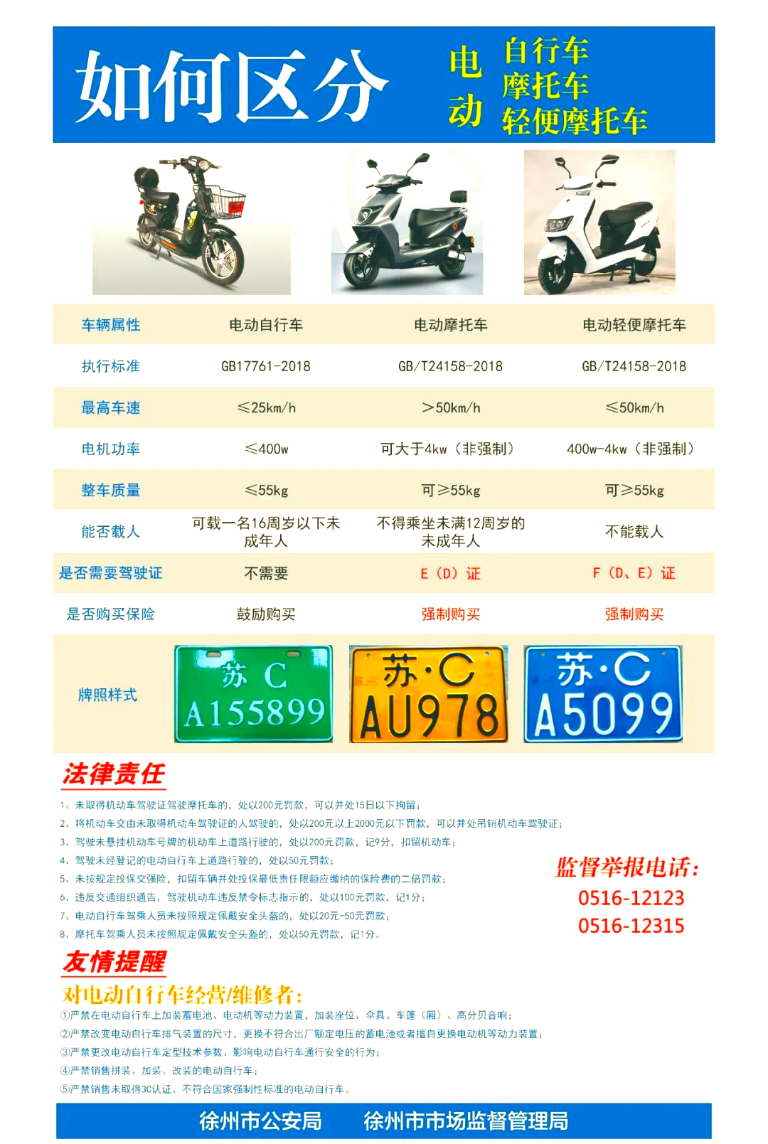 截至目前,徐州市的电动自行车保有量已达到300多万辆。根据《江苏省电动自行车管理条例》的规定,江苏省范围内的超标电动车过渡期将于2024年4月14日截止。这意味着,之前电动自行车上所挂的临时信息牌在4月14日之后将不再有效。那么,对于部分车主所使用的电动摩托车,该如何确保其规范上路呢?针对这一问题,徐州市公安局交警支队车管部门给出了详尽的解答。同时,也提醒大家在购车时务必仔细分辨电动自行车、电动轻便摩托车和电动摩托车之间的区别,选择最适合自己的车型,并妥善保管车辆凭证,以便及时办理上牌手续。