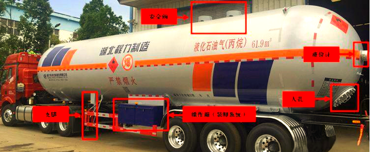 延伸部分—2:LPG运输车在车体两侧(尤其是车体中部)均配备了操作箱(装卸系统)。
