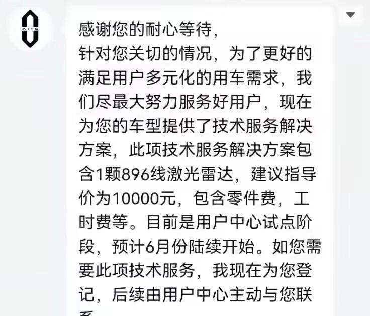问界老车主“1万块升半套雷达”,被骂三个月后终于有说法了