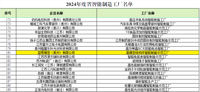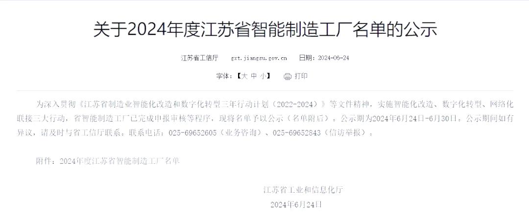 江苏省工业和信息化厅近日公示了2024年度江苏省智能制造工厂的名单。