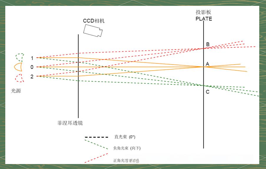 a) 当同一角度的光束经过菲涅尔透镜时,它们会汇聚到一个特定的点上。因此,即使灯光在照射到灯箱时略微偏左或偏上,只要大部分光束进入灯箱,其结果不会受到影响。