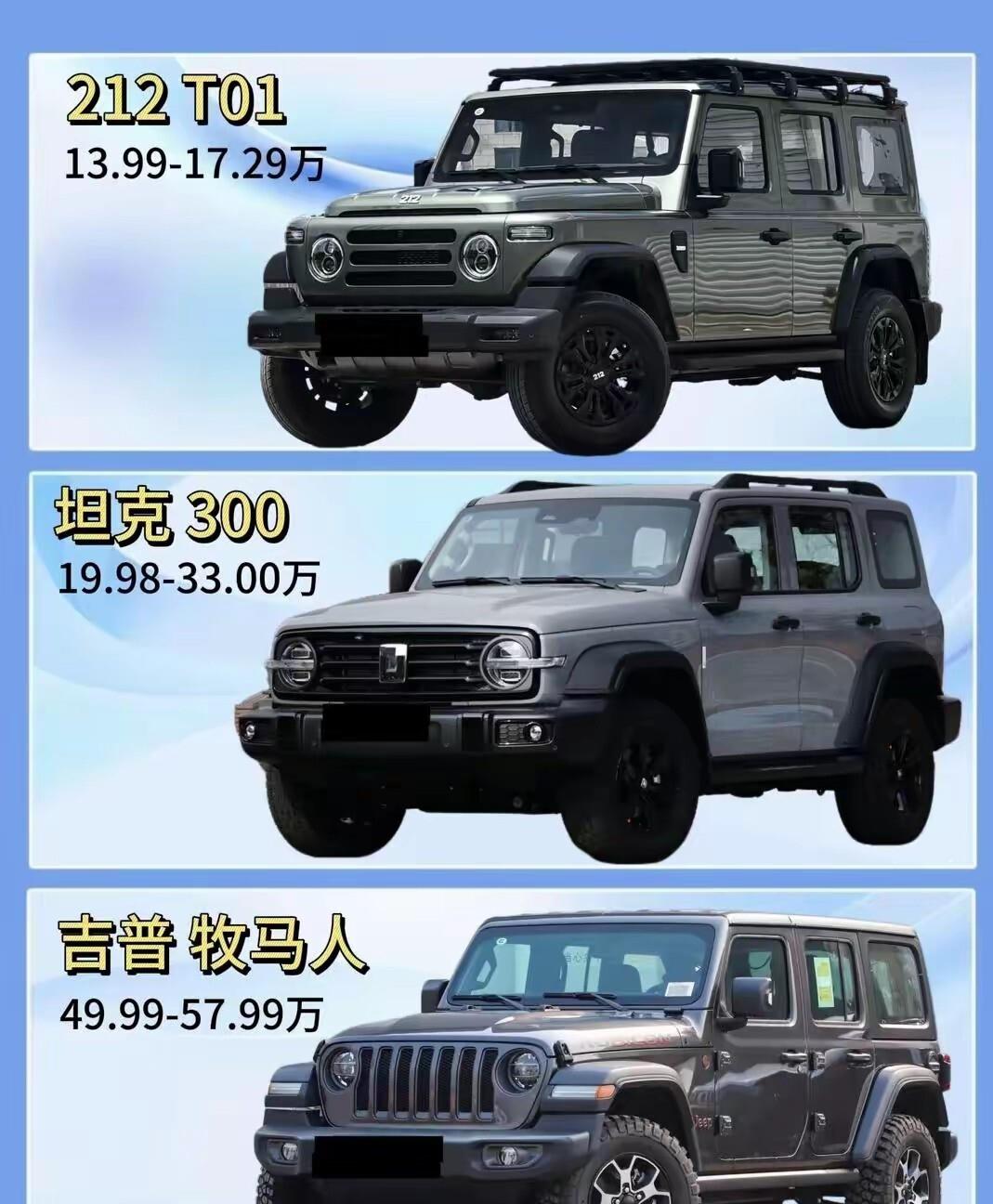 我就爱柴油越野车,BJ40和坦克300都挺好,可我还是选了212就为那老吉普的情怀,懂的人都懂