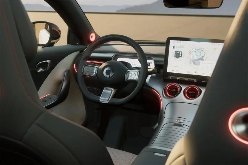 坐进车内,这种艺术沉浸感还在继续。彩色安全带瞬间点亮了车厢,头枕、中控屏界面、甚至脚垫上,都点缀着艺术家的经典元素。它没有为了艺术而牺牲掉smart本来该有的精致感,而是把这种潮流基因,用更张扬的方式外化了出来。当然,作为一台限量版,它基于长续航版打造,该有的智能车机、舒适配置一样不少,只是多了一层独一无二的“皮肤”。