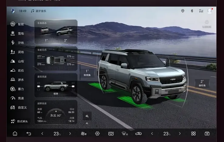 它的本质,是一台可以通过软件持续重构底层机械素质的车。这次刚推送的第七次OTA,信息量极大。六座七座版直接升级了DMO+平台,全速域路面感知控制技术让扭矩输出不再受速度、地形限制——翻译成白话:以前越野车要靠经验选模式,现在系统自己感知冰面还是沙地,自己分配轮端抓地力。更狠的是华为ADS 4.1的全系推送,路口激活NCA、环岛通行、ETC自动过闸,这些功能以前是新势力城市SUV的专属,现在硬派越野也有了,而且不另收费。