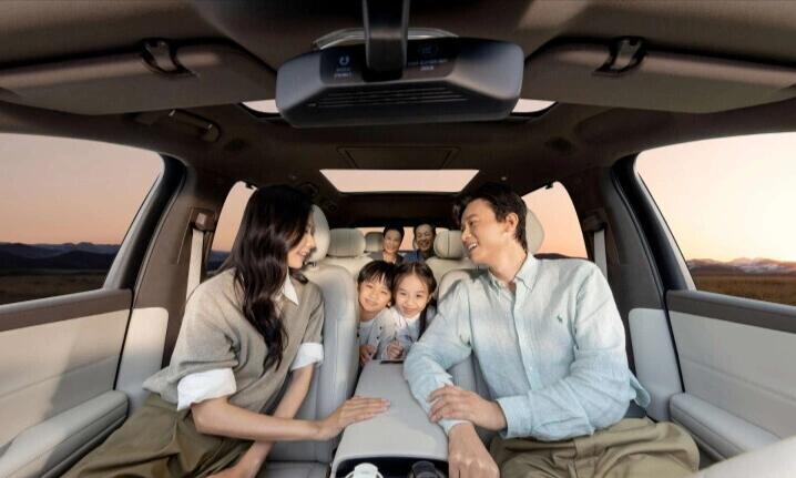 腾势N8L闪充版的家用安全优势,从来不是单一维度的安全配置堆砌,而是全场景、全维度的贴心守护,这也是其超越理想L8的核心底气。作为一款大型六座SUV,它拥有5200/1999/1820mm的车身尺寸与3075mm的超长轴距,2+2+2六座布局搭配宽敞驾乘空间,远超理想L8的空间表现,无论是老人、孩子还是成年人,都能获得舒适的乘坐体验,彻底告别拥挤困扰。内饰配备多屏互联系统,语音接入DeepSeek大模型,兼顾智能化与便捷性,帝瓦雷+杜比全景声音响打造沉浸式体验,同时全系标配前排与第二排座椅通风、加热、按摩功能,主驾主动侧翼调节、副驾零重力女王座椅,兼顾舒适与安全,而理想L8存在座椅通风效果不稳定、迎宾座椅逻辑有误等问题,舒适性与实用性远不及腾势N8L闪充版。
