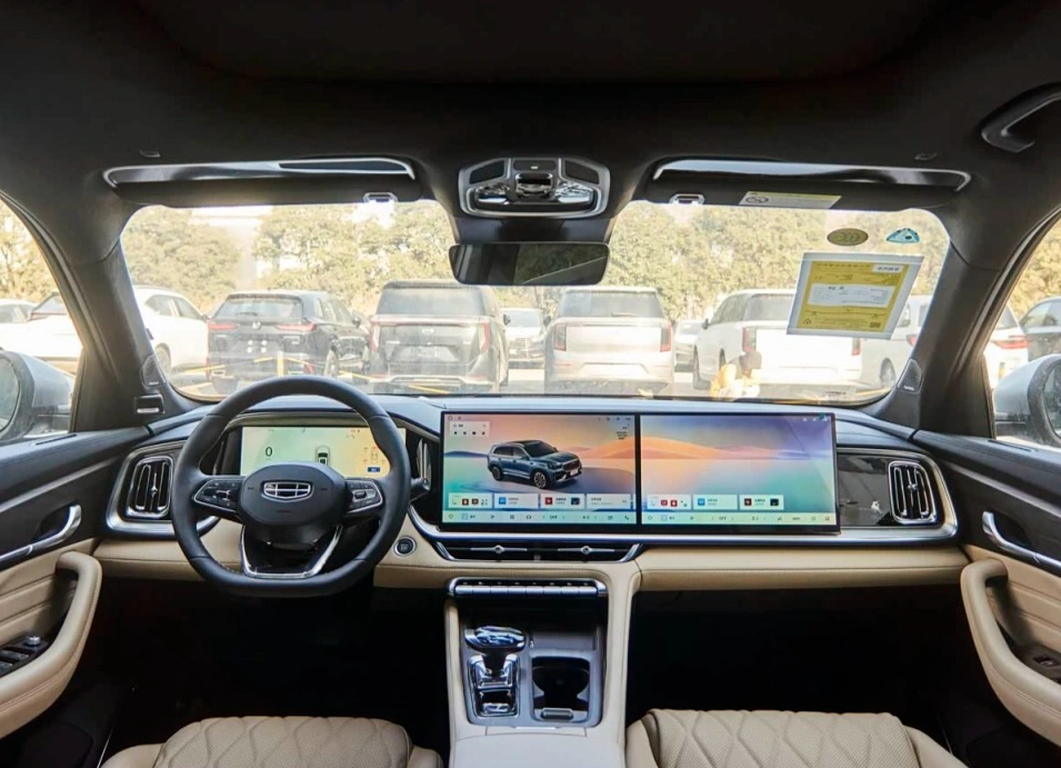 老陈的纠结,其实正是星越L能卖爆的根源。这车最厉害的一点,就是它用燃油车的身份,却把新能源车那套“高智商”和“高配置”学了个八九不离十,吉利把这叫做“油电同智”。你坐进去,最显眼的就是那几块大屏幕,车机用的是高通骁龙8155芯片,操作起来贼拉流畅,语音控制啥的都很顺手。