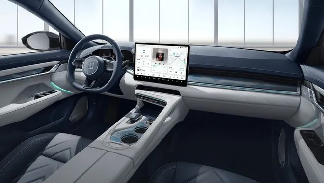 内饰主打豪华与科技兼顾,质感与舒适性拉满。以“星空音乐厅”为座舱概念,采用全新分层式设计,大面积覆盖Monaco NAPPA头层真皮和千鸟格纹饰板,搭配巴黎饰钉工艺,高级感十足,无线充电区覆以麂皮绒,储物盒内置植绒,细节处尽显用心。配备16英寸3.5K超清向日葵中控屏、39.3英寸AR-HUD抬头显示和13.02英寸高清机长仪表,三屏联动操作流畅,还加入浩瀚星空顶,氛围感拉满。座椅舒适性拉满,伊姆斯躺椅后排支持125度最大舒展躺角,配备3D深层按摩系统,前排20个、后排12个按摩点位,长途乘坐也能倍感轻松。