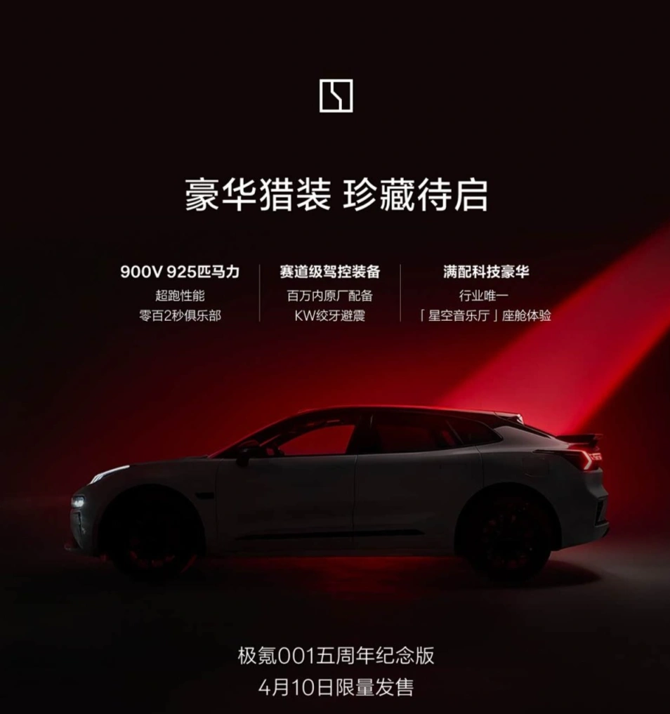 全栈900V,起步925马力!极氪001五周年纪念版将于4月10日上市