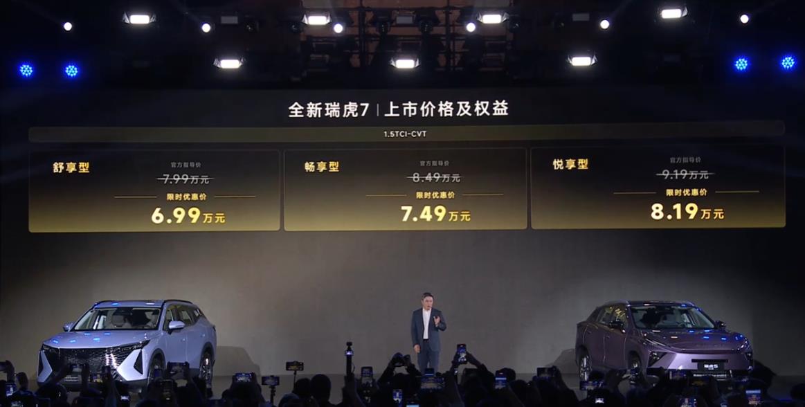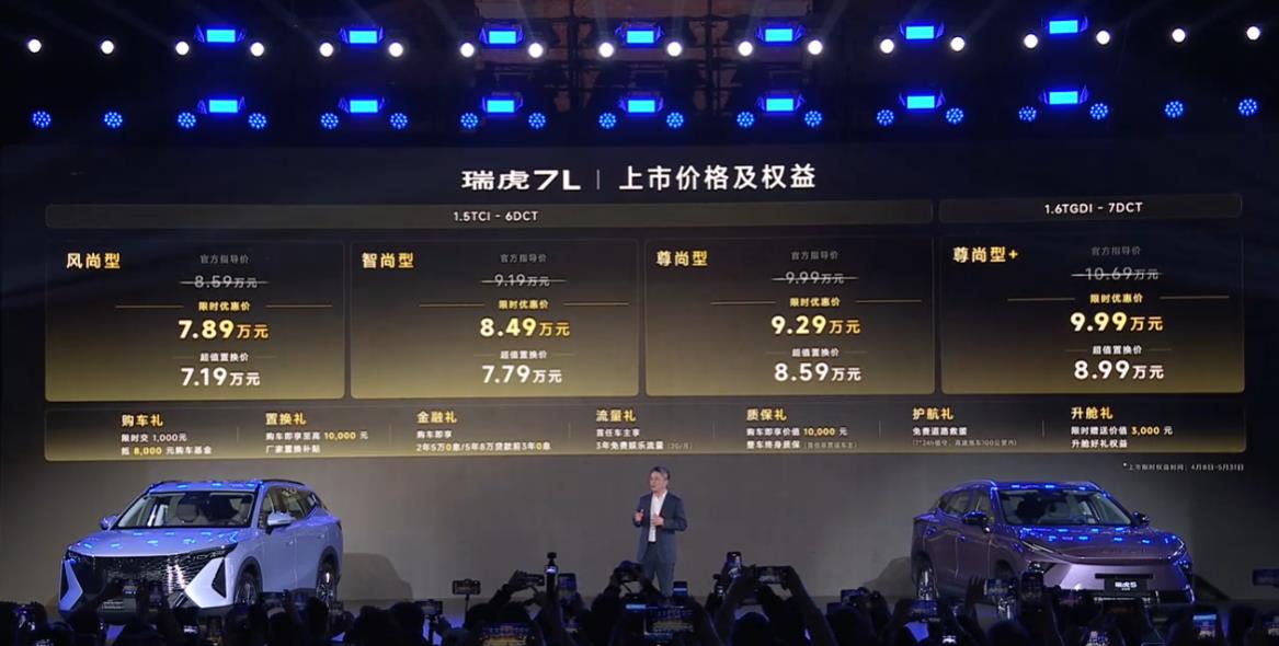最近有个朋友拿着手机给我看,说网上有篇帖子讲奇瑞的新车,里面提到一个观点让他特别纠结。帖子说,瑞虎7L的配置确实比瑞虎7好,但瑞虎7的尊尚版好像更划算。作者还撂下一句狠话:要是不差钱就直接上顶配,不然的话,最起码的配置智尚型才是能用的配置。至于瑞虎7,低配全是手动调节加织物座椅,太素了,所以建议从7.49万的配置开始选。这意思很明白,两款车都得从第二个配置起步买。这话听起来挺实在,但到底靠不靠谱?2026年4月8日,奇瑞在安徽芜湖搞了个大动作,瑞虎7L、全新瑞虎7还有瑞虎5运动版三款车一起上市了。价格一出来,很多人直呼内行。瑞虎7L官方指导价8.59万到10.69万,但有个限时优惠,直接干到了7.89万到9.99万。如果你有旧车置换,那价格更狠,7.19万就能开走最低配。全新瑞虎7的官方指导价是7.99万到9.19万,限时优惠价6.99万到8.19万。也就是说,你手握7到10万的预算,突然多了两个看起来很香的选择。