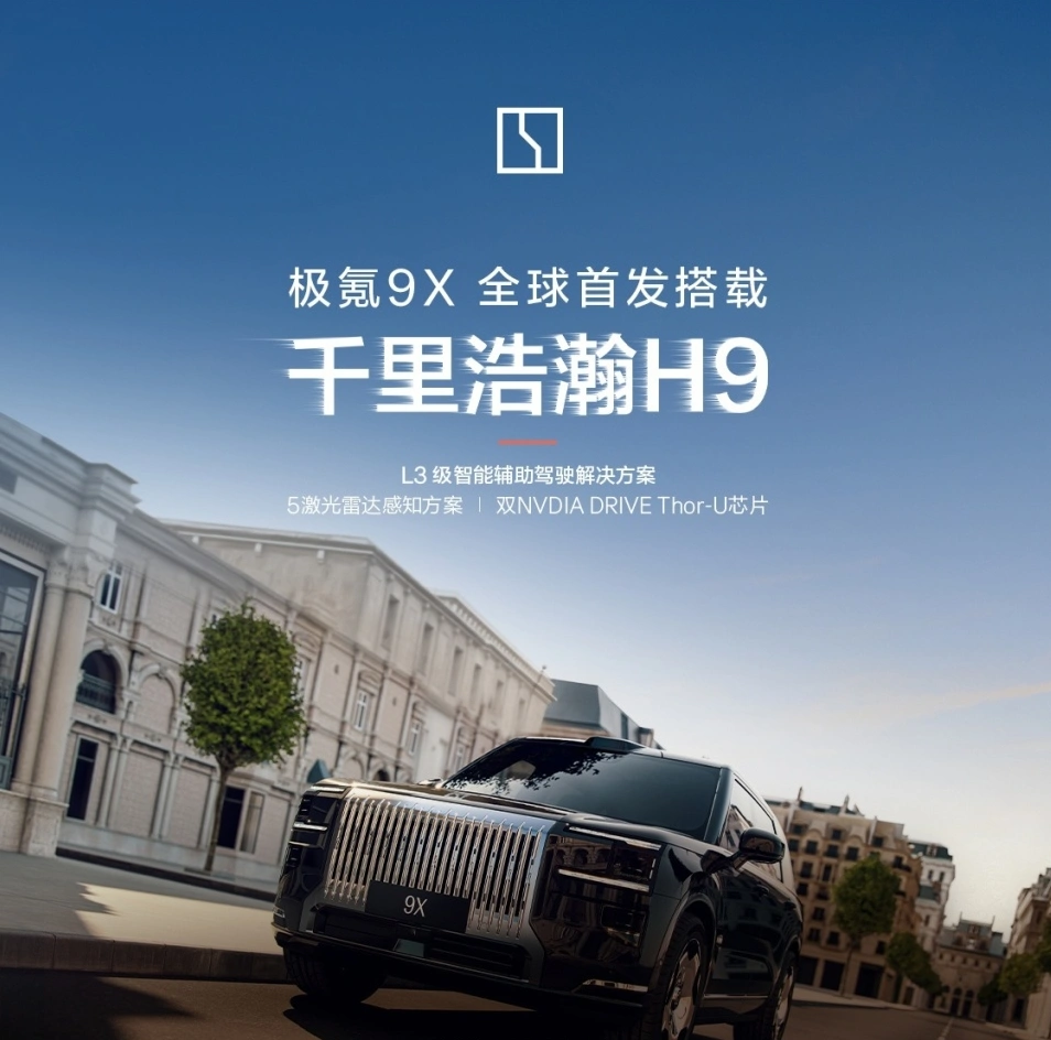 然而,真正让极氪9X敢于定出高价的,是它恐怖的“技术军备”。在智能驾驶上,高配版搭载了5激光雷达方案和双NVIDIA Thor芯片,算力高达1400TOPS,这套“千里浩瀚H9”系统在硬件上已属顶流。在性能层面,它基于全栈900V高压架构,三电机插混系统综合功率达到惊人的1030千瓦,零百加速3.1秒,这完全是超跑级的数据。