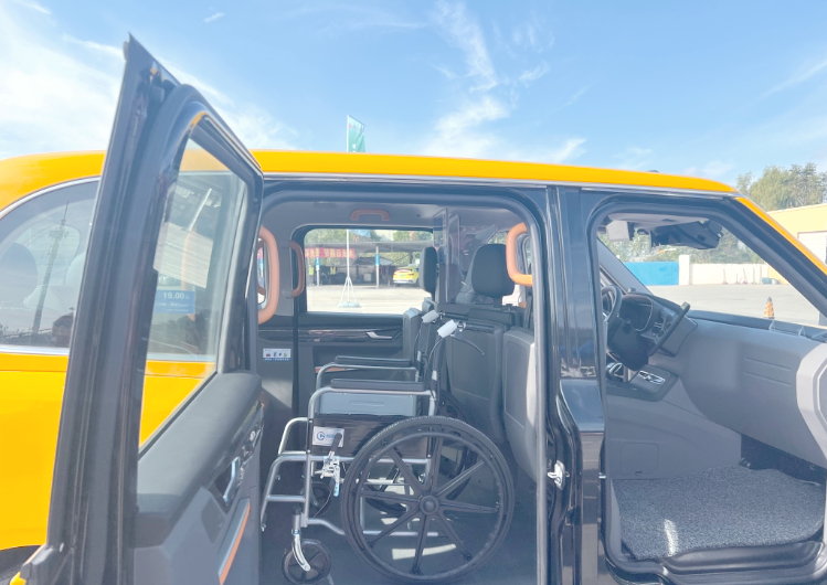 强生出租公司相关负责人透露,为进一步提升服务质量和满足特殊需求,公司特别从吉利汽车引进了50辆LEVCTX5英伦风格新能源车。这些车辆不仅载客量更多,还能轻松容纳四到五个三十英寸的箱子,远超普通出租车。此外,车型内部还精心设计了轮椅进出系统,采用司乘分离式布局,并配备了专为盲人乘客设计的凸点盲文控制面板和触摸屏,以提供更便捷、舒适的出行体验。