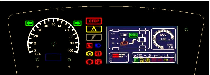 2、右上角则直观地显示了电池的剩余能量(SOC),而中间位置则实时展示电机转速,这些信息均来源于CAN信号,确保数据的准确性和实时性。