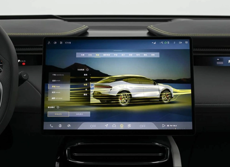 内饰兼顾豪华与运动,细节拉满。三联屏布局:15.6英寸OLED中控+12.6英寸仪表+副驾屏,显示细腻、操作流畅。Nappa真皮座椅+Alcantara可选,前排16向调节+通风/加热/按摩,后排电动倾斜,长途也舒服。23扬声器KEF音响、10级调光智能天幕、缎面碳纤维饰板,质感与格调双在线。5103mm车长带来大五座空间,后备箱能装下28寸自行车,家用性能两不误。