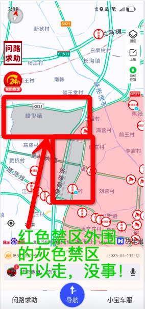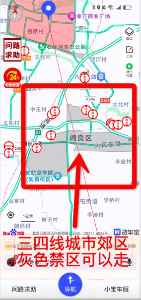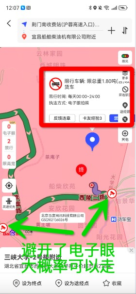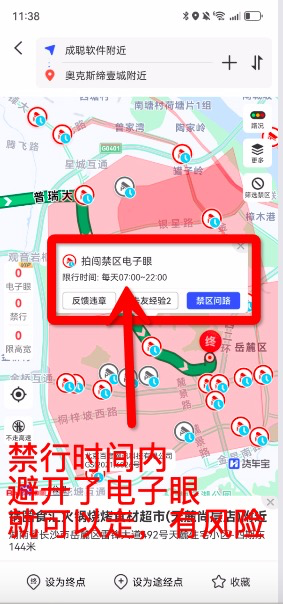 4、全天禁区,如果路线避开了已有电子眼,80%没事!如果要追求100%安全,最好是去12123申请通行证。