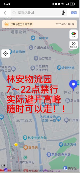 6、如果是去市中心区,特别是会展中心、各种展览馆、各种大型商超中心的,请务必去12123申请通行证,很容易通过审批的;一旦觉得路线有疑问,就去货车宝问路求助社区发帖,有问必答,十分钟内必有回复!