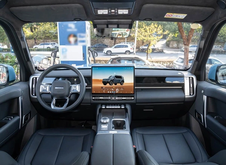第一眼较量,两车就走向了不同的岔路。方程豹钛7是新能源时代的潮男,设计未来感十足;而iCAR V27则是个复古派,方正的线条、外挂的备胎,尤其是前脸上那对玄月圆灯,一下子就把人的记忆拉回到了路虎卫士、丰田LC70那些经典硬汉的年代。这种致敬经典的设计,不是为了单纯模仿,而是精准地提供了一种稀缺的“情绪价值”。对于老张这样内心有点越野情怀,但日常99%都在城市铺装路上跑的用户来说,这种硬派外观带来的心理满足,远比一个真正的差速锁来得实在。
