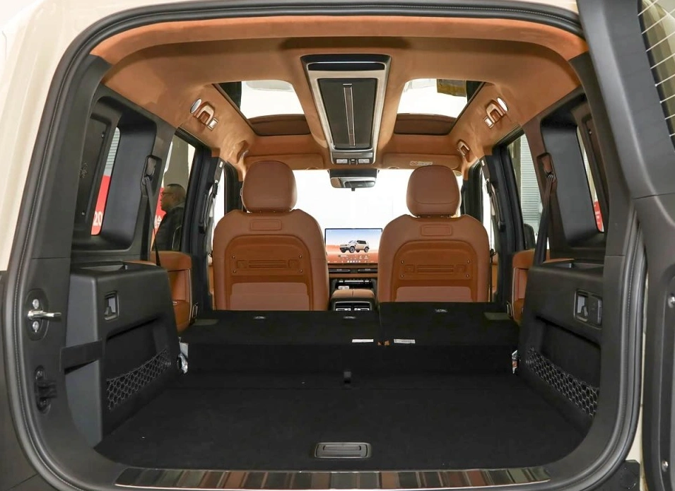 光有样子可不行,家用的里子必须扎实。V27将近5米的车长和2910mm的轴距,摆明了就是要做家庭的主力座驾。它很聪明地玩起了“空间魔术”,方正的车身造型带来了极高的“得房率”,不仅后排腿部空间宽敞,那规整的后备厢在放倒座椅后,容积能拓展到1800升,婴儿车、露营装备都能一股脑塞进去。相比之下,虽然钛7尺寸接近,但V27在空间利用的直观感受上,确实更贴近它“家庭新硬派SUV”的定位。