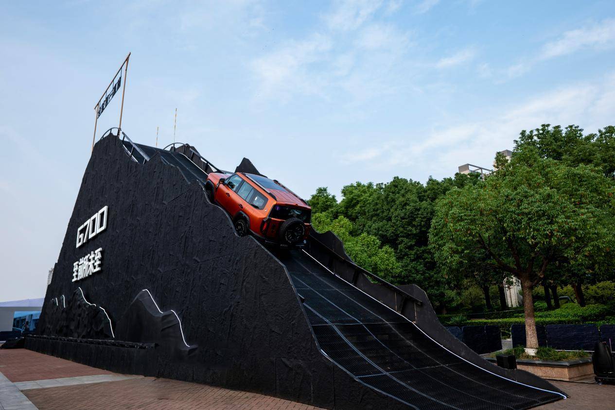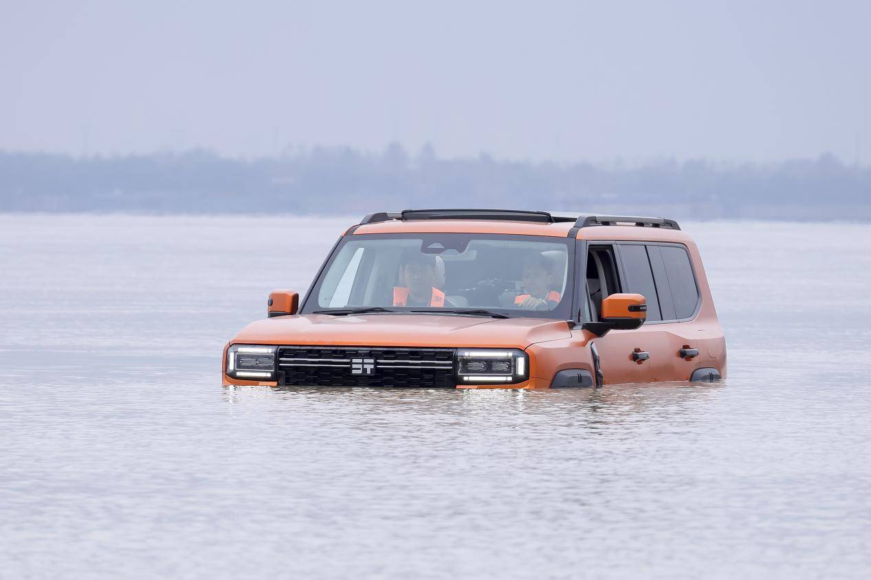 该技术核心首先是“全域密封”:G700采用整车一体式无孔油漆车身,车门、底盘、天窗等关键部位用“三重密封结构”,外循环通风口与泄压阀遇水自动关闭;发动机、变速箱、电机、电池等核心零部件达IP68级防水,电池用“井”字形高强度框架保护,2米水深浸泡48小时无恙,远超国标96倍。