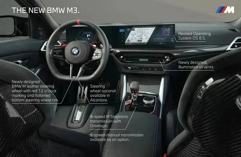 坐进车里,最抢眼的是那个全新设计的平底方向盘,上面有红色的回正标识,握上去驾驶欲望一下就上来了。经典的“鸡腿”挡把也得以保留。科技感方面,它用了12.3英寸全液晶仪表和14.9英寸中控屏组成的一体式曲面屏,搭载最新的iDrive 8.5车机系统,用起来挺顺手。
