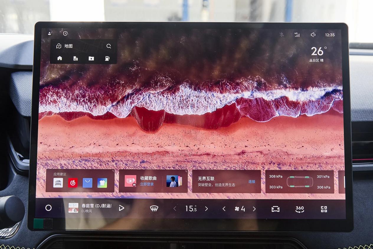 搭载LYNK Flyme Auto智能座舱系统。这套系统提供类似智能手机或者平板一样流畅直观的交互体验,15.4英寸悬浮式中控屏分辨率达到了2.5K,边框窄屏占比高,采用龍鹰一号车机芯片,算力相当于高通骁龙8155,都是7nm制程工艺,配合16GB内存和128GB存储,整套系统触控丝滑不卡顿,支持桌面自定义、小窗模式等,桌面布局简洁,常用功能触控方便。
