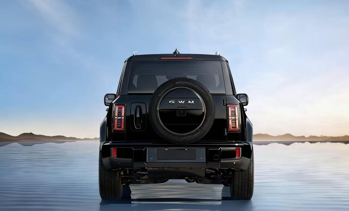 转到侧面,机械式的门把手和固定的侧踏板都在告诉你,它没打算为了所谓的“科技感”牺牲最可靠的东西。轮圈用的是那种密辐条的设计,看起来挺豪华,但配上高耸的车身和宽大的轮眉,气场一下子就出来了。尾部是经典越野车的样式,近乎垂直的后窗,侧开式的尾门,还有一个专门用来挂全尺寸备胎的接口。这种设计在城里停车可能得注意点距离,但到了野外,那种实用和可靠的感觉是电动尾门给不了的。
