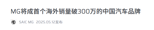 亏本卖车这种事,就基本不存在了。但对上汽而言,更大的惊喜是,自主品牌站起来了。2025年,上汽自主品牌狂卖292.8万辆,逼近300万辆了。像上汽名爵MG,在国内卖的一般般,但在欧洲、印度、泰国、墨西哥以及智利等国,卖得风生水起,全年海外销量就突破60万辆了,累计销量超过300万辆,也是第一个出口超过300万辆的中国汽车品牌。