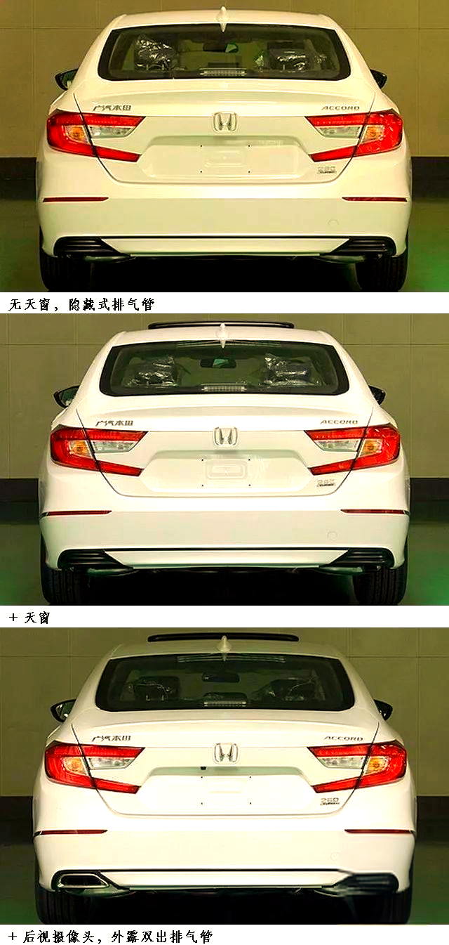 新雅阁的C型尾灯组仅部分采用LED光源,而倒车灯和转向灯仍沿用卤素灯泡。通过车尾的260TURBO和220TURBO标识,可以清晰区分1.5T动力的高低功率版本。此外,排气管设计也显示出两者之间的差异:低功率版本采用隐藏式设计,而高功率版本则配备外露的双出式扁平排气管。