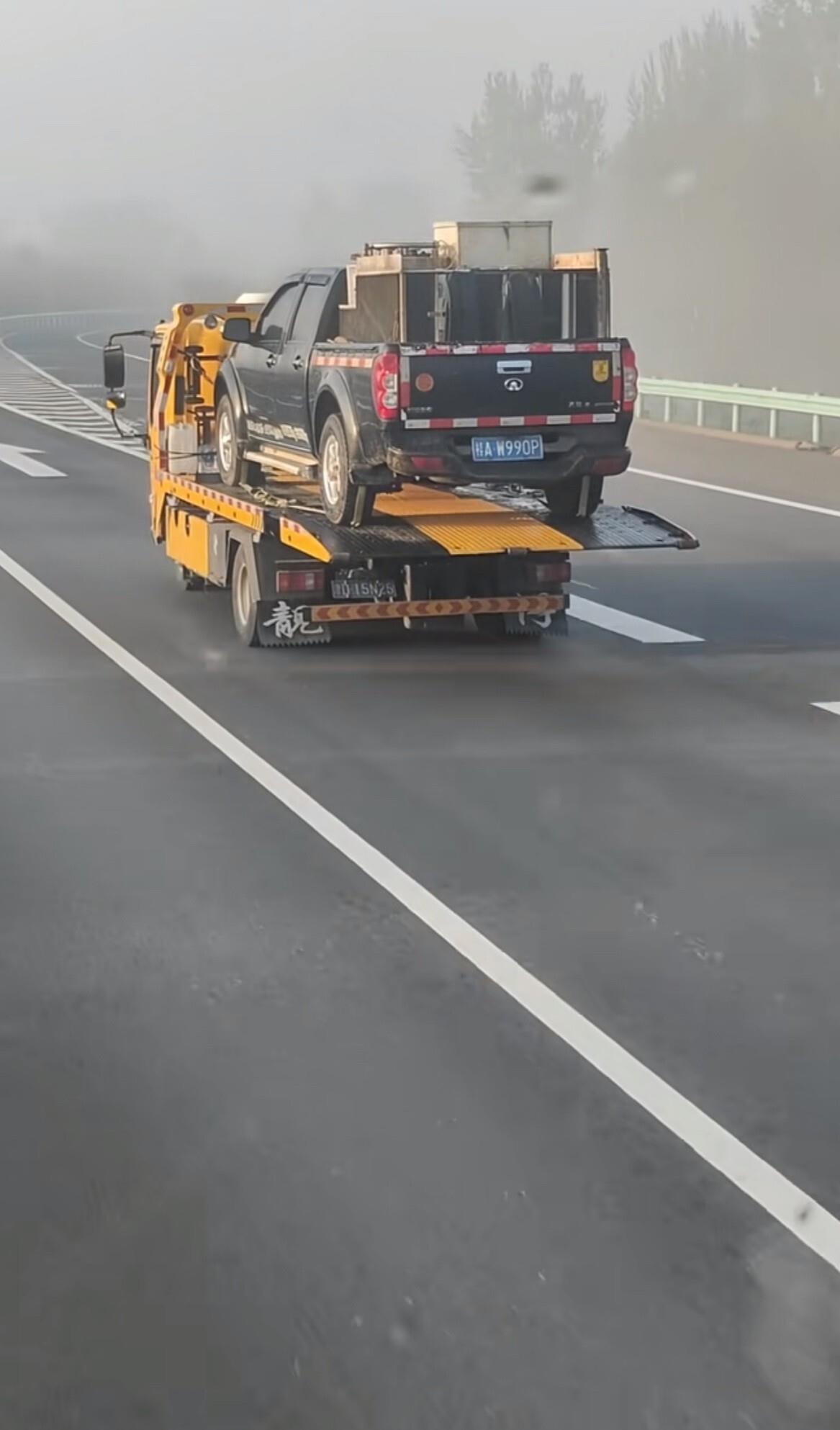 前几天有网友在河北的高速公路上,看到一辆板车拖着一辆长城风骏5皮卡在跑。这本来没啥稀奇的,但眼尖的人发现,这辆皮卡的车牌和造型,跟最近网上特别火的那辆“百万公里风骏”一模一样。没错,就是那辆被广西南宁一位运鱼小哥开了9年,跑了将近100万公里,发动机、变速箱、底盘三大件从来没大修过的“国产战神”。车主叫张万锋,广西钦州官垌镇人,在南宁做官垌鱼的运输生意。他这趟被拖车拉着,是要从广西去河北保定,赴一个特别的约。