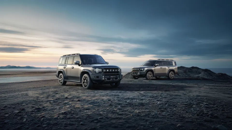 先聊旅行者PLUS(燃油版)。车身加长了249毫米,直接干到超5米。这是个什么概念?真七座,不是那种第三排只能坐宠物的伪七座。二排有小桌板——同级唯一,长途带孩子或者临时办公,实用到哭。全系鲲鹏动力2.0TGDI发动机+8AT变速箱,峰值功率187kW,峰值扭矩390N·m。这套动力总成在国产阵营里属于第一梯队,关键是全系标配,不玩高低功率阉割那套。64英寸全景天窗,打开之后接近敞篷体验。魔术电吸尾门——这个细节我很喜欢,长途穿越身上全是泥的时候,不用使劲摔门,轻轻一带就吸上了。车身扭转刚度31000N·m/deg,潜艇级强度。高强度钢占比80%,加上一体式双门环结构。说白了就是:翻滚了,车顶扛得住147kN的压力;被追尾了,笼式车身能保命。还有同级唯一的540°全景影像,300万像素环视摄像头。你坐在车里看屏幕,比站车外看还清楚。