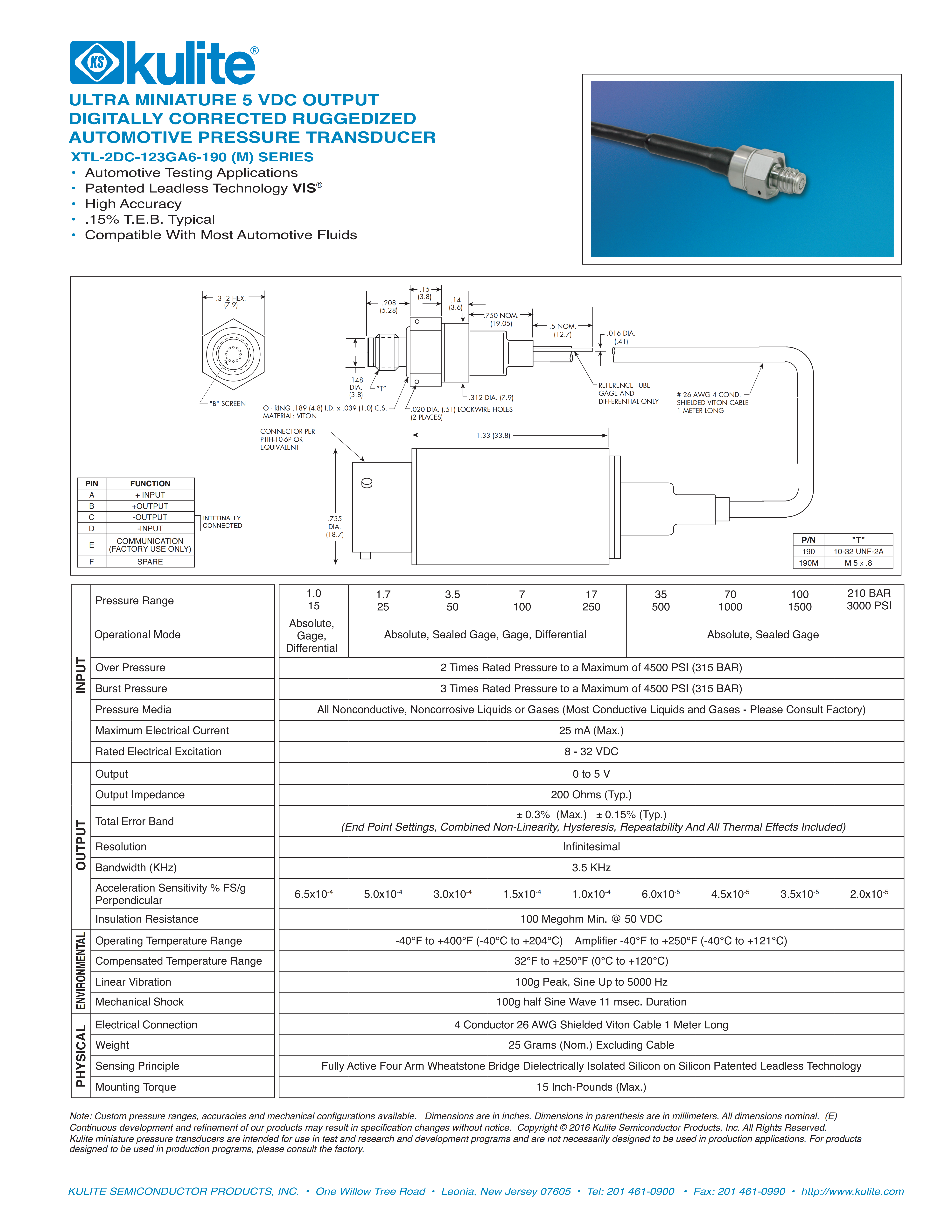 Kulite XTL-2DC-123GA6-190压力传感器