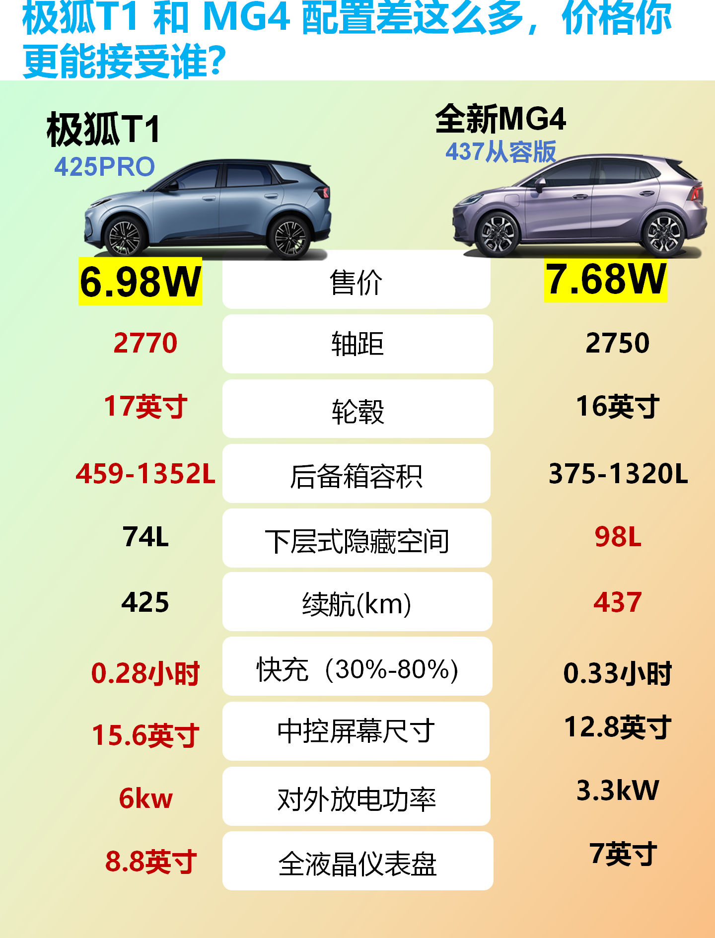 极狐T1和MG4配置解析 无钥匙进入谁更便捷