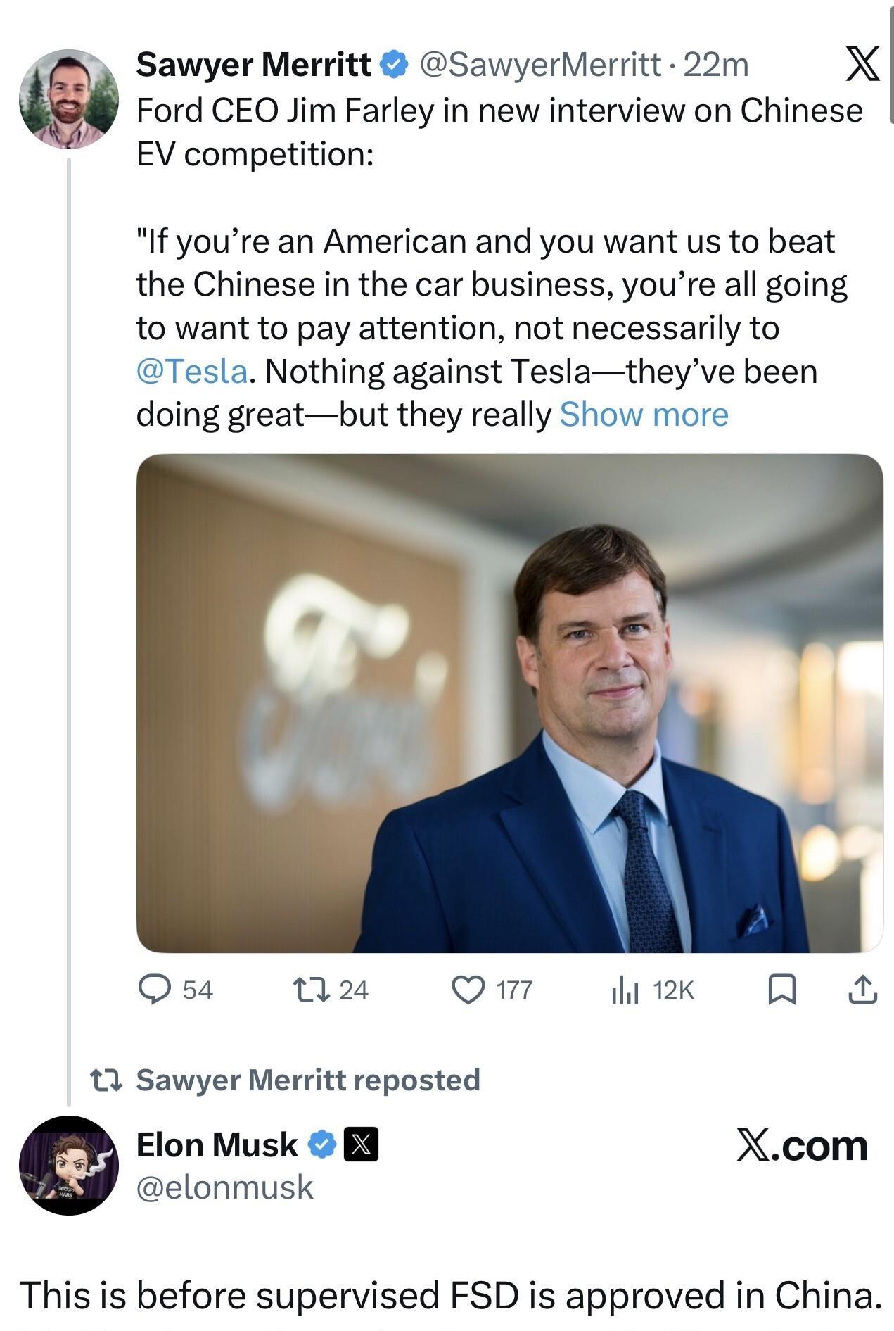 马斯克回怼福特前CEO:等我FSD获批把你们都干趴下!但中国车主用脚投票,3月销量暴跌24%