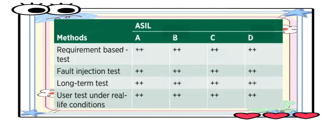 为确保功能安全,需要提供充分证据来证明安全目标、标准和概念已得到妥善实现。这包括验证安全机制、FTTI验证以及系统间的独立性等要求。功能安全确认就是为此目的而设计的,它通过一系列的测试程序、测试用例和标准来评估系统的安全性。确认结果将被详细记录在安全案例中,成为生产状态释放的关键依据。在ISO 26262框架下,表4列出了针对MRM安全要求的确认方法及首选测试策略。