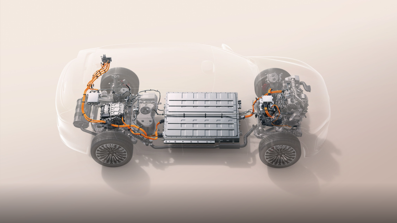 搭载增程混动,由1.5T增程器与电机组成,有两驱有四驱。两驱版本搭载的后置单电机最大功率215千瓦,峰值扭矩380牛·米,百公里加速时间7.8秒。四驱版前后双电机综合功率350千瓦,综合扭矩570牛·米,零百加速仅需4.9秒。
