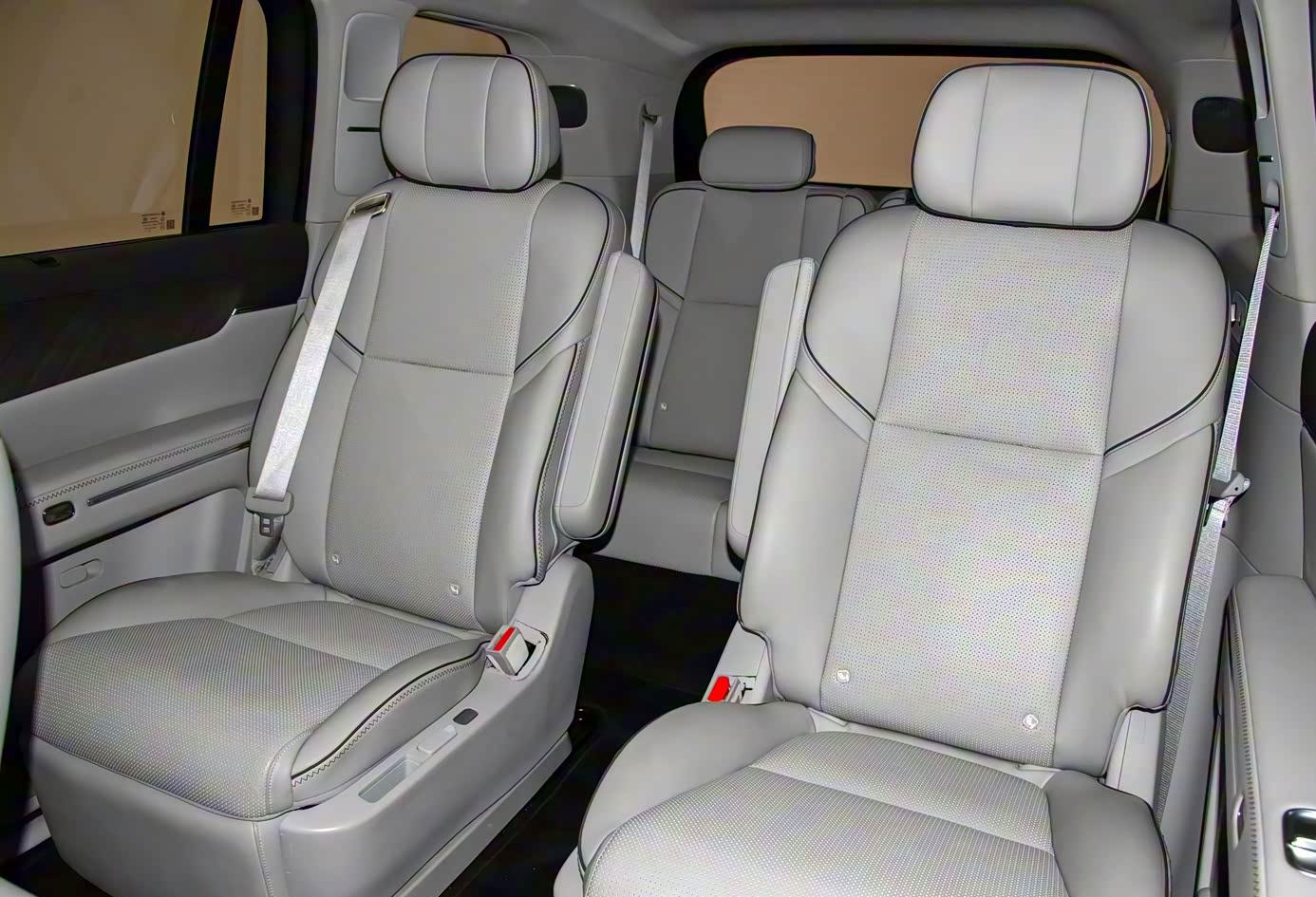 智能配置上,双高通8797芯片,60英寸AR-HUD,17.3英寸中控屏,21.4英寸后排电动娱乐屏,后排还有8.1L冷暖冰箱,-6℃到50℃可调。第二排配了零重力座椅,四向腿托,第三排座椅还能加热。车载制氧机这种配置也塞进去了,二排双折叠桌板、B柱拉手、夹层隔音玻璃,能给的都给了。