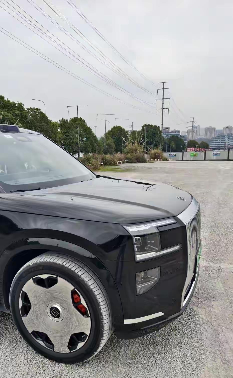 但“杭州库里南”呢?从实车目测来看,为了把更多空间腾给座舱,它的车头明显被压缩了。这就产生了一个很尴尬的视觉效果:从侧面看,整个车像是一个方盒子直接怼在了前轴上,没有那种“往前探”的侵略性。