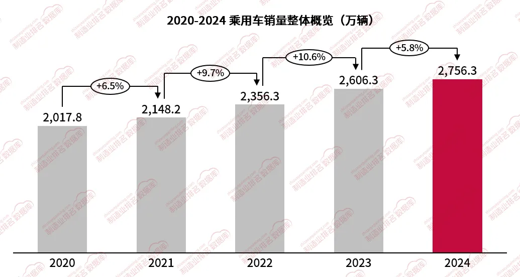 2024年全年乘用车销量是2756.3万辆,同比增长5.8%,连续两年站稳2500万辆台阶。市场呈现出V型反转特征,上半年表现欠佳;下半年在“以旧换新”等政策强力驱动下,叠加车企年底冲刺,需求集中爆发。