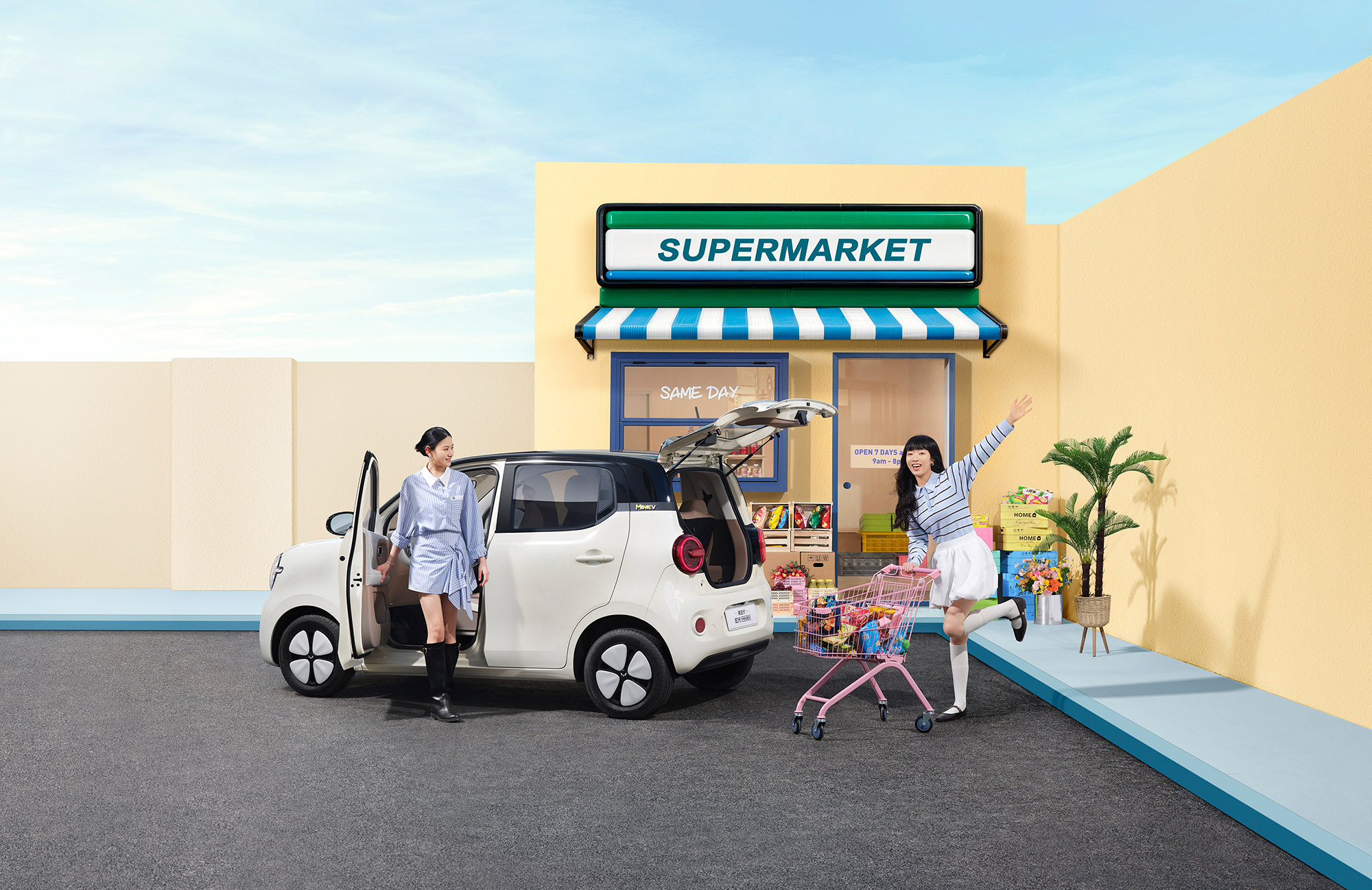 五菱偏不。第五代MINIEV直接用同级唯一的四门四座设计,把这个原罪给赎了。